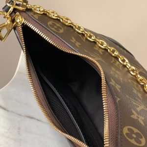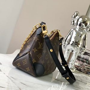 Odeon mini bag in trumpet shape, featuring Monogram canvas with reinforced leather corners for a vintage touch. The adjustable shoulder strap allows it to be worn on the shoulder or crossbody, and the zipper opens easily to access your essentials.