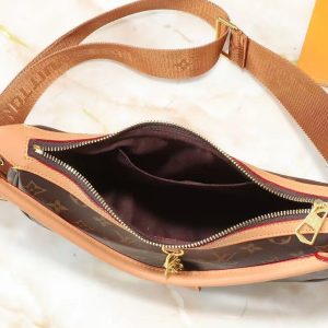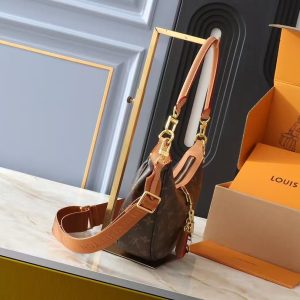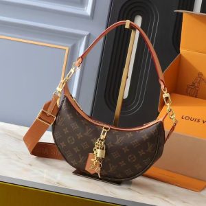 The LooHobo handbag combines Monogram coated canvas and Monogram Reverse coated canvas, with leather corner accents defining a trendy half-moon silhouette. It features removable handles and an adjustable shoulder strap for multiple carrying options. Size: 22 x 9 x 33 cm (H x W x L)