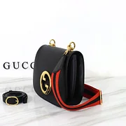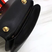Round interlocking medium shoulder backpack. Brown leather + canvas, gold-tone hardware. Cotton and linen lining. Interior compartments. Hand-held pearl wrist, eye-catching vintage round interlocking design. Dual shoulder straps for versatile styling. Material: textured imported leather with high-end smooth vintage brass hardware, full leather. Size: 29x22x7cm